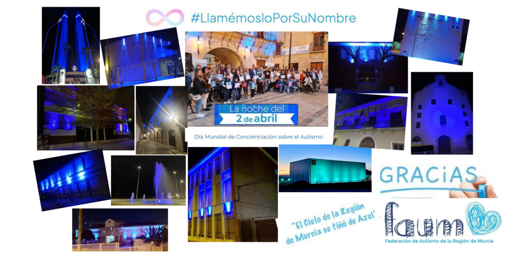 Queremos expresar nuestra más sincera gratitud a todas las personas, instituciones y empresas que se involucraron para acompañarnos y/o para iluminar edificios emblemáticos en toda la Región de Murcia con ocasión del Día Mundial de Concienciación del Autismo, el pasado 2 de abril. Cada año somos más.